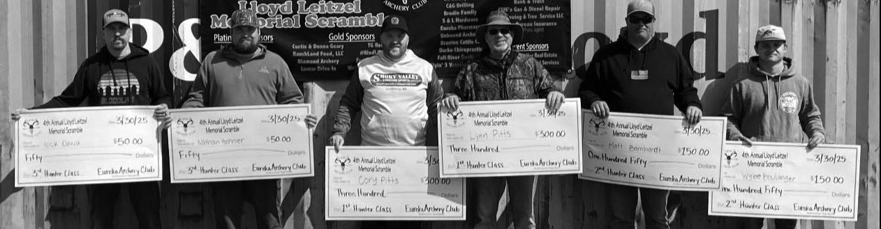 Kenny Holding 2nd - Devan Komarek Trenton Cooper 3rd - David Engelsman Russell Wood Hunter Class 1st - Lynn Pitts Cory Pitts 2nd - Wylee Boulanger Matt Barnhardt 3rd - Nathan Schnier Nick Dawa Traditional Class 1st - Mel Parks Beau Parks The proceeds from these shoots go towards The Lloyd Leitzel/Eureka Archery Club Scholarship given to Greenwood County High School seniors that have shown an interest in archery and the purchase of new targets for the club.