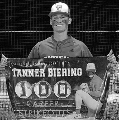 Biering began pitching for the Tornadoes late in his freshman season and was unable to pitch during the majority of his junior season due to a hand injury, yet worked hard to accomplish this career milestone.