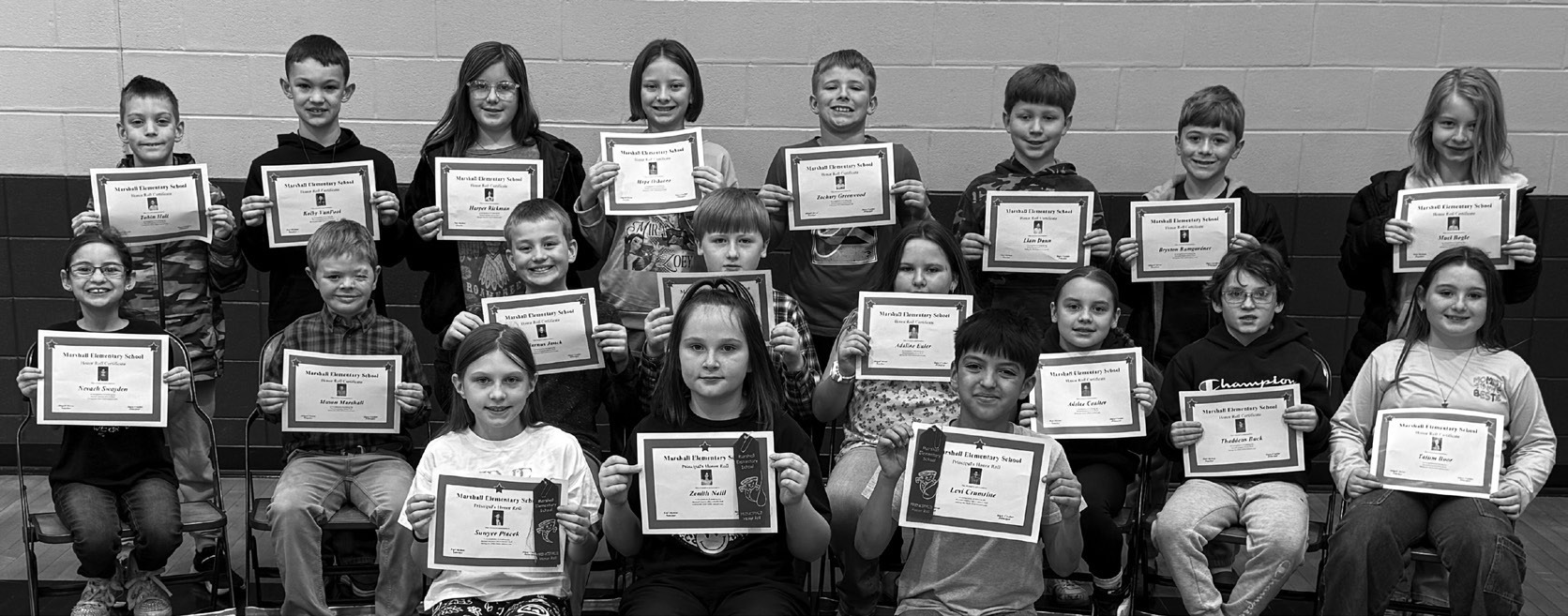 Marshall Elementary School released the Principal’s Honor Roll (all A’s) and Honor Roll (A’s and B’s) for fourth through sixthgrade students, for the second nine-weeks. Those students were recognized last week during a special school announcement. Students were presented with a certificate and treated to donuts with their parent/ guardians following the presentation.