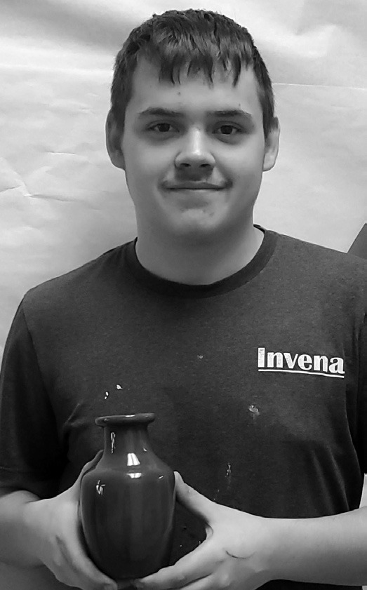 Senior Hunter Olsen’s Brown Roman Vase, crafted on the potter’s wheel, and sevventh grader Bronwyn Hall’s Still Deer with Marigolds, drawn in oil pastels, were selected.
